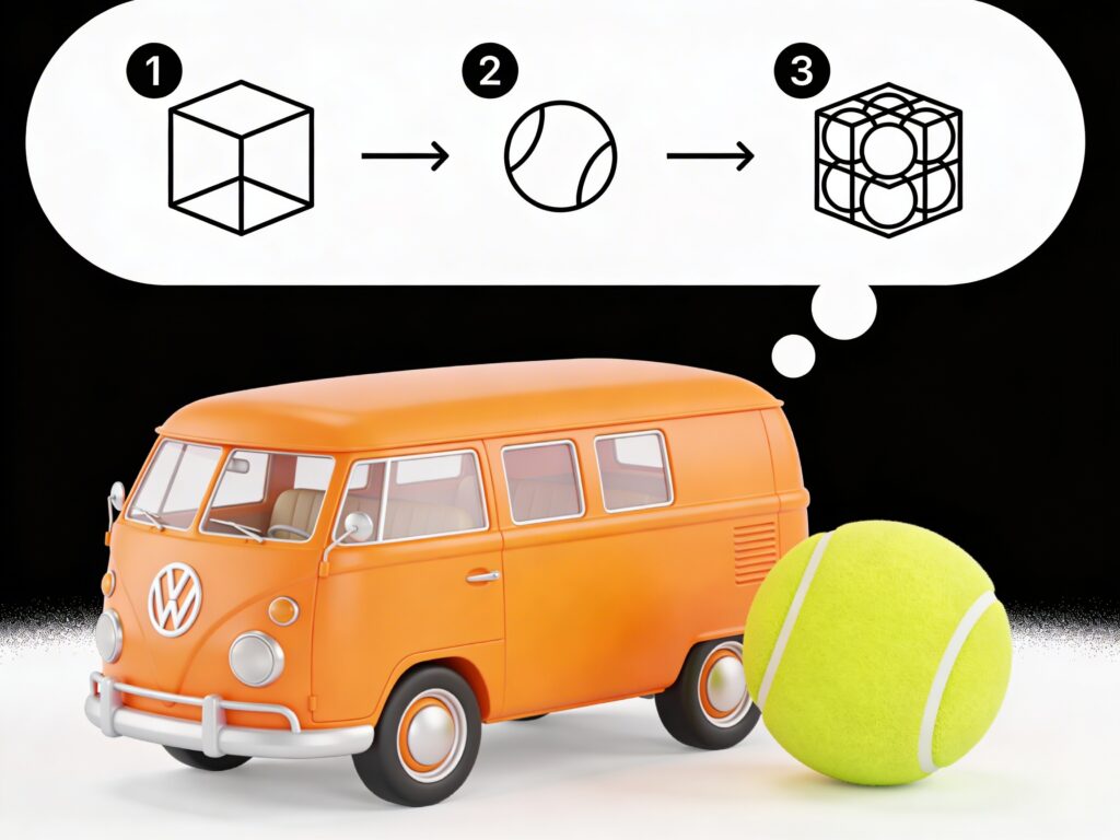 Auf die Frage „Wie viele Tennisbälle passen in einen Kleinbus?” antwortet ein klassisches Sprachmodell spontan mit einer Schätzung. Ein Reasoning-Modell hingegen zeigt seine Gedankenkette. Dieser „sichtbare Rechenweg” erlaubt es, Fehler nachzuvollziehen und zu korrigieren.